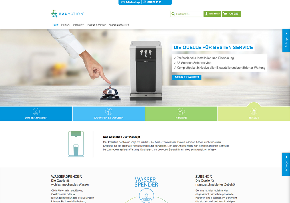 Eauvation ist eine Marke der Winterhalter Deutschland GmbH, welche sich seit 1947 auf gewerbliches Spülen spezialisiert hat. Mit Eauvation vertreiben sie nun auch Wasserspender für Büros und Bildungseinrichtungen.